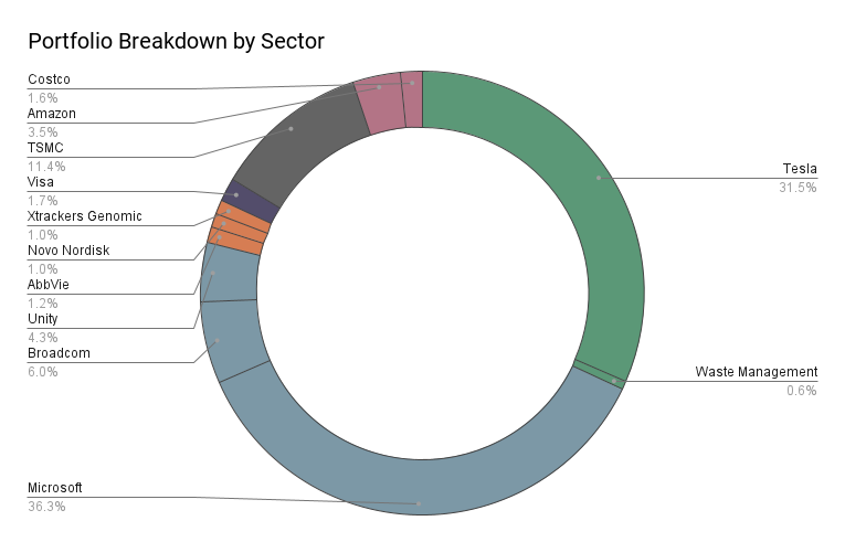 | Finance | Coinbase (COIN) | Under consideration | Strong brand and leadership, unprofitable, previously owned |